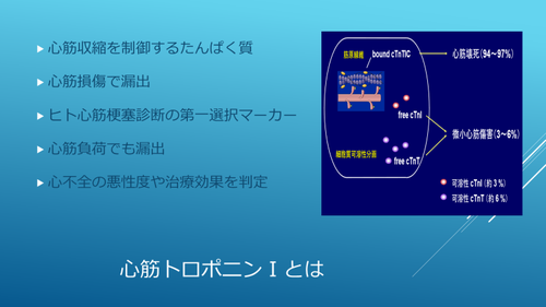 心筋トロポニンIは心筋細胞の壊死や負荷で増加することが知られています。